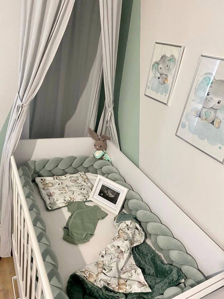 A rácsvédő nélkülözhetetlen részét képezi babakelengyédnek, megvédi kisbabádat alvás során, hogy ne üsse be magát a kiságyba miközben forgolódik. Puha plüss anyagához szívesen odabújnak, később a gyerekágyba is ideális választás falvédőként. A fonott rácsvédő kellően magas, kialakítása stabil tartást ad. Különleges, modern megjelenésével egyedivé varázsolhatod a babaszobát.