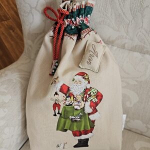 Vászonból készült, hátul kis zsebbel díszített Mikulás zsák, amibe a gyerekek levelet vagy rajzot tehetnek a Mikulásnak a várakozás időszakában.