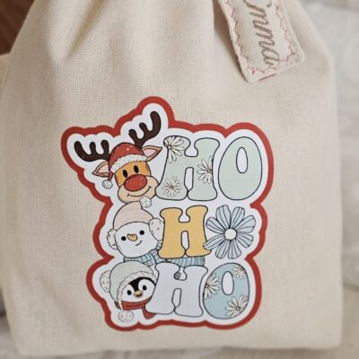 Nyomott mintás Mikulás zsák hímzett névvel ho-ho-ho
